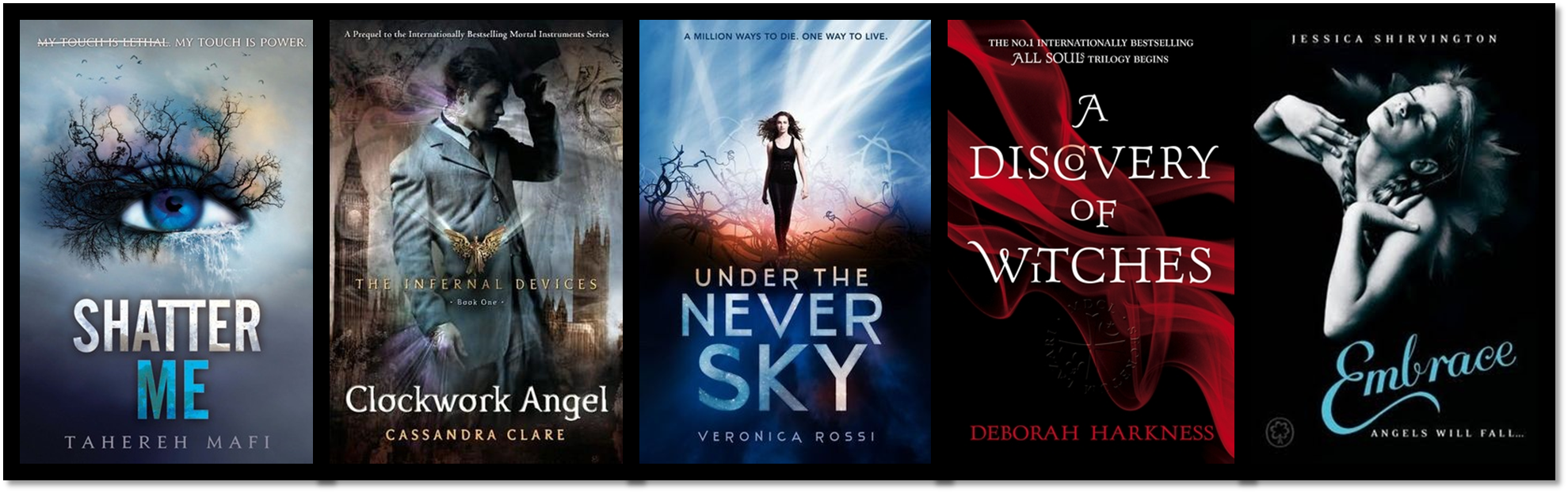 I read Shatter Me but to be honest, I didn’t like it so I didn’t continue the series. I have a couple of the others on my eReader but STILL haven’t even started them. 😦 The Discovery of Witches being one I’ve had for 3 years. Yikes!