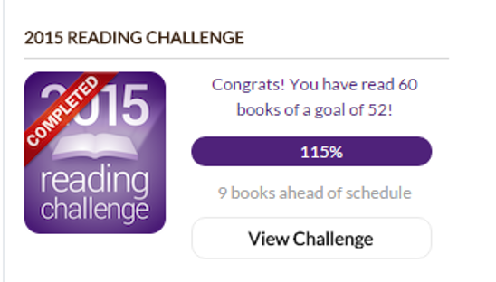 I set my Goodreads Challenge at 52 books in 2014, and ultimately finished on 62. I debated increasing my Challenge target to 60 for 2015, but decided to stick with 52 because it’s much more manageable and realistic for me to aim to read 1 book per week, taking into consideration my other commitments. People who read over 100-150 books per year, I salute all of you, because I’ve no idea how you do it!